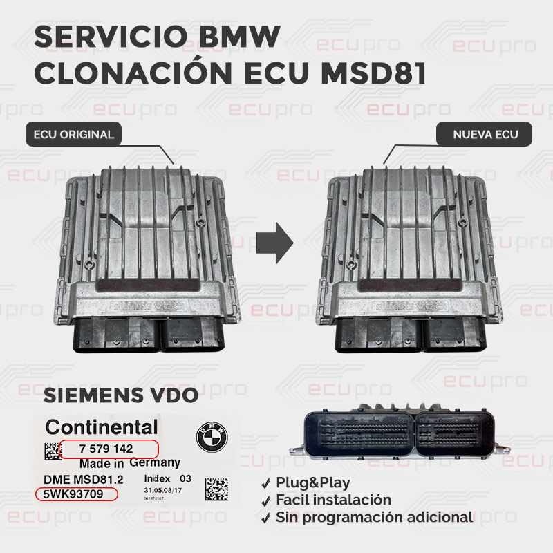 En Ecupro España ofrecemos un servicio especializado de clonación de centralitas de motor DME para BMW, centrado en la referencia BMW 7621178 Continental 5WK94901, perteneciente a la familia MSD81. Este servicio está diseñado para talleres mecánicos, profesionales de automoción y propietarios de BMW que necesitan reemplazar una ECU DME averiada con otra de reemplazo, asegurando la transferencia completa de VIN, ISN, software y codificación, para un funcionamiento plug & play sin necesidad de programación adicional.
