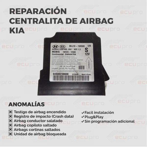 Contacta con Ecupro España y solicita tu reparación profesional de la centralita de airbag Kia 95910 1W100 Mobis.