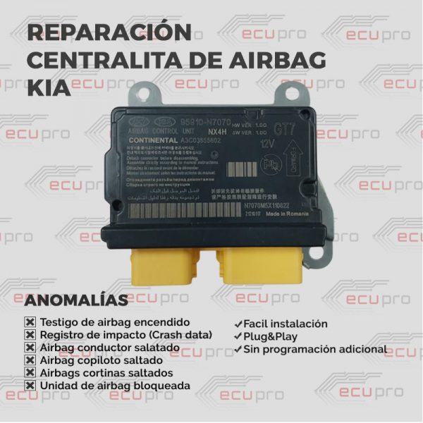 En Ecupro España ofrecemos un servicio para la reparación de centralitas de airbag KIA 95910 N7130, fabricada por Continental y utilizada en diversos modelos de KIA y Hyundai. Este servicio está orientado tanto a talleres como a particulares que necesiten restaurar el correcto funcionamiento del sistema SRS tras un impacto o activación de los airbags.