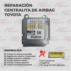Servicio técnico especializado en reseteo y reparación de centralitas de airbag Toyota (SRS / Airbag ECU). Eliminamos los datos de impacto y los códigos de error tras un accidente para restaurar la unidad y mantener la seguridad del vehículo. Trabajamos con módulos originales sin necesidad de sustituirlos.